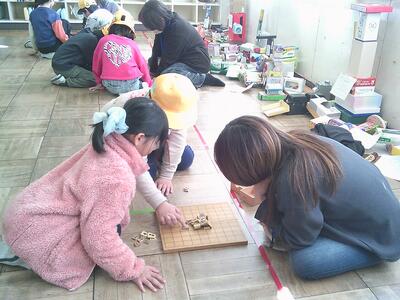「かるた・あやとり・けんだま・こま・おてだま・しょうぎ」をローテーションで回り、各先生といっしょにむかしあそびを楽しみました。10分間で移動となっていたので、まだやり足りなさそうな表情で次の教室に移動していく様子も見られましたが、次の場所につくと、すばやい気持ちの切り替えで次の遊びに夢中になっていました。