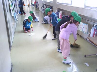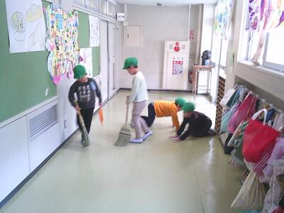 1年生も清掃の仕方を理解して、高学年と同じように無言清掃に取り組んでいます。