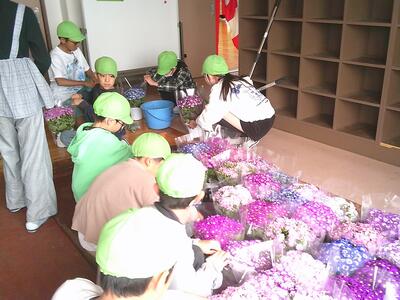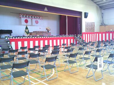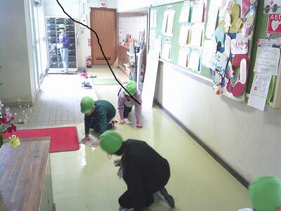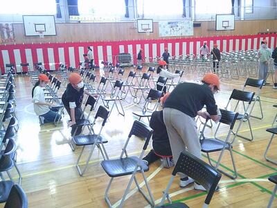 その後は、4~5年生による前日準備の清掃等が行われました。花を飾ったり、玄関や廊下の清掃、体育館の椅子の位置を整えたり、拭いたりして、式場も整いました。その働きぶりが、大変頼もしく見えました。その証拠に、予定時間よりも早く終えることができました。ありがとうございました。