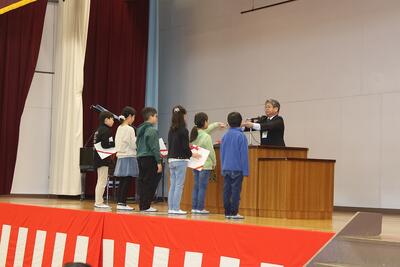 修了式では、各学年代表に校長から修了証が手渡されました。その後の5年代表児童の言葉には、この一年間の学習場面、生活場面で自信がついたと、堂々とした態度で話をしていました。